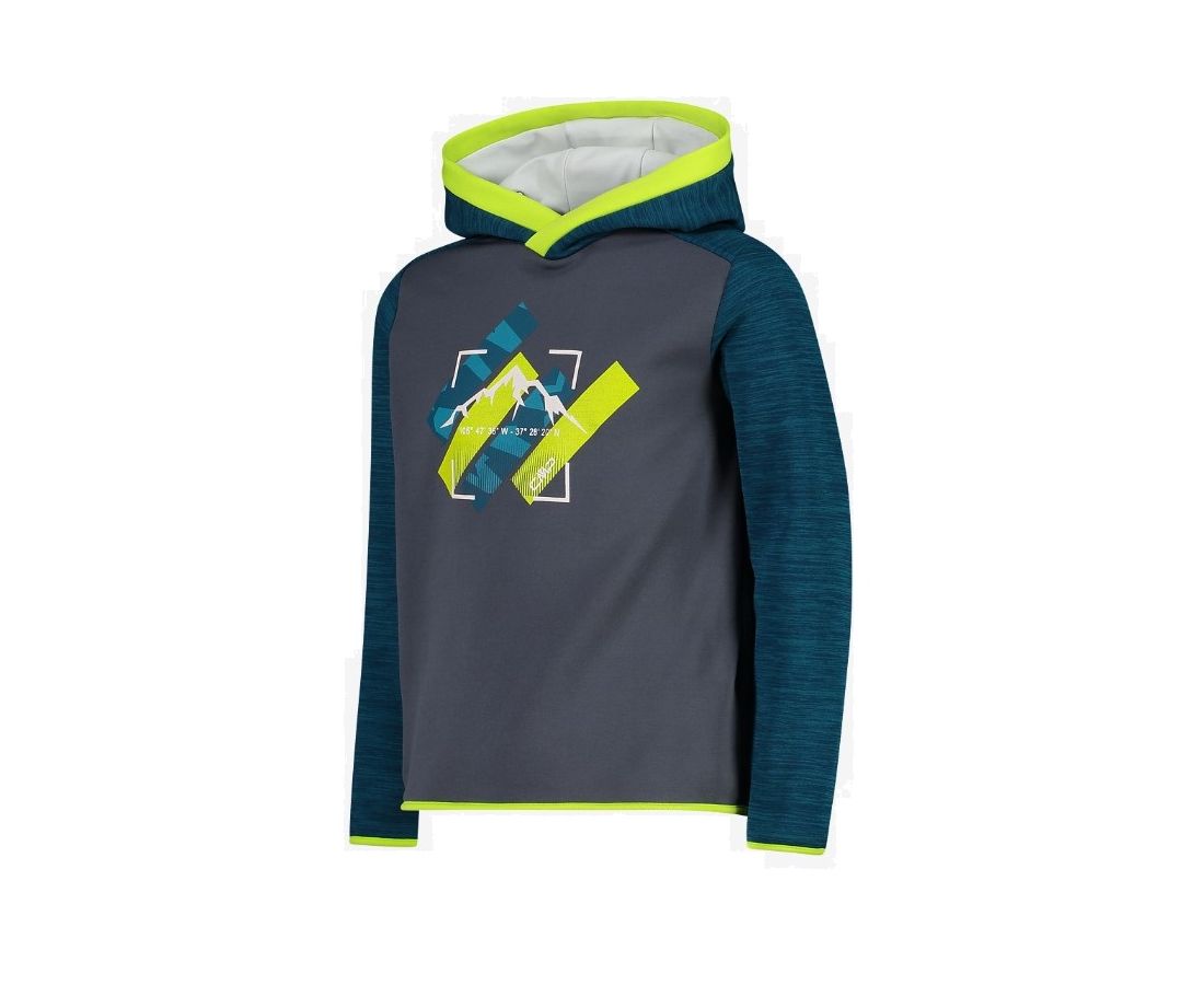 Sweatshirt aus Stretch Performance Gewebe, leicht, isolierend und in der Lage, auch die schwierigsten Körperbewegungen zu begleiten. Ein unverzichtbares Kleidungsstück, das durch die Outdoor-inspirierte Grafik auf der Vorderseite aufgewertet wird und mit Details ausgestattet ist, die den Komfort und die Funktionalität erhöhen, wie die beiden Kordelzüge zum Verstellen der Kapuze und der elastische Saum an den Ärmeln und am Saum. Dieses Kleidungsstück wird vollständig in unseren eigenen Fabriken hergestellt und ist nach dem Oeko-Tex® Standard 100 zertifiziert, der garantiert, dass nur Materialien und Farbstoffe verwendet werden, die die Umwelt nicht belasten und nicht giftig für den Menschen sind.