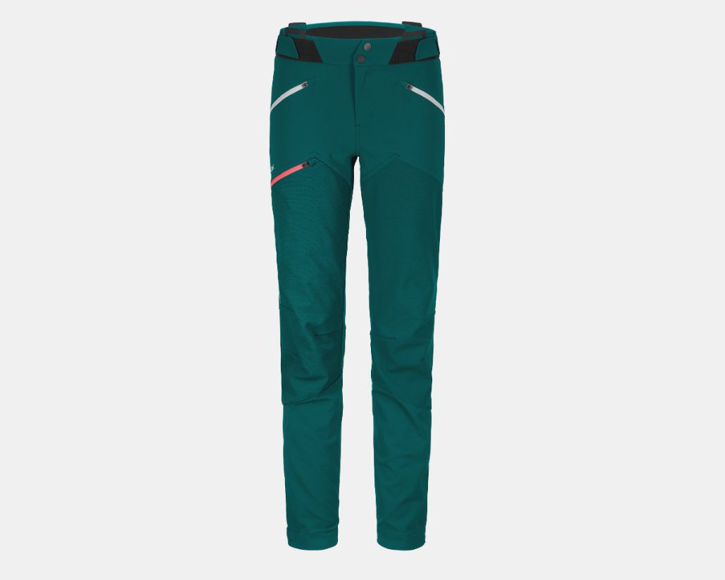 Die Besonderheit der WESTALPEN SOFTSHELL Damen-Hochgebirgshose ist das QUICK-GAITER-System, das die Bündchen komplett ersetzt: Mit dem von ORTOVOX entwickelten Saumverstellsystem lässt sich die Hose in drei Schritten schnell und einfach verstellen und perfekt an den Stiefel anpassen. Die Befestigungsgurte unter dem Stiefel sind aus kratzfestem Dyneema-Material gefertigt und können bei Nichtgebrauch problemlos verstaut werden. Dank zusätzlicher Features wie den verschleißfesten schoeller®-Einsätzen oder Belüftungsreißverschlüssen lässt sich die WESTALPEN SOFTSHELL Damen-Hochgebirgswanderhose an alle Situationen und Wetterbedingungen anpassen. Merino-Mesh-Einsätze im elastischen, weitenverstellbaren Bundbereich sorgen für optimalen Komfort. Der Umwelt zuliebe ist diese Hochgebirgswanderhose zudem PFC-frei und wird in Europa hergestellt, wodurch lange Transportwege vermieden werden.