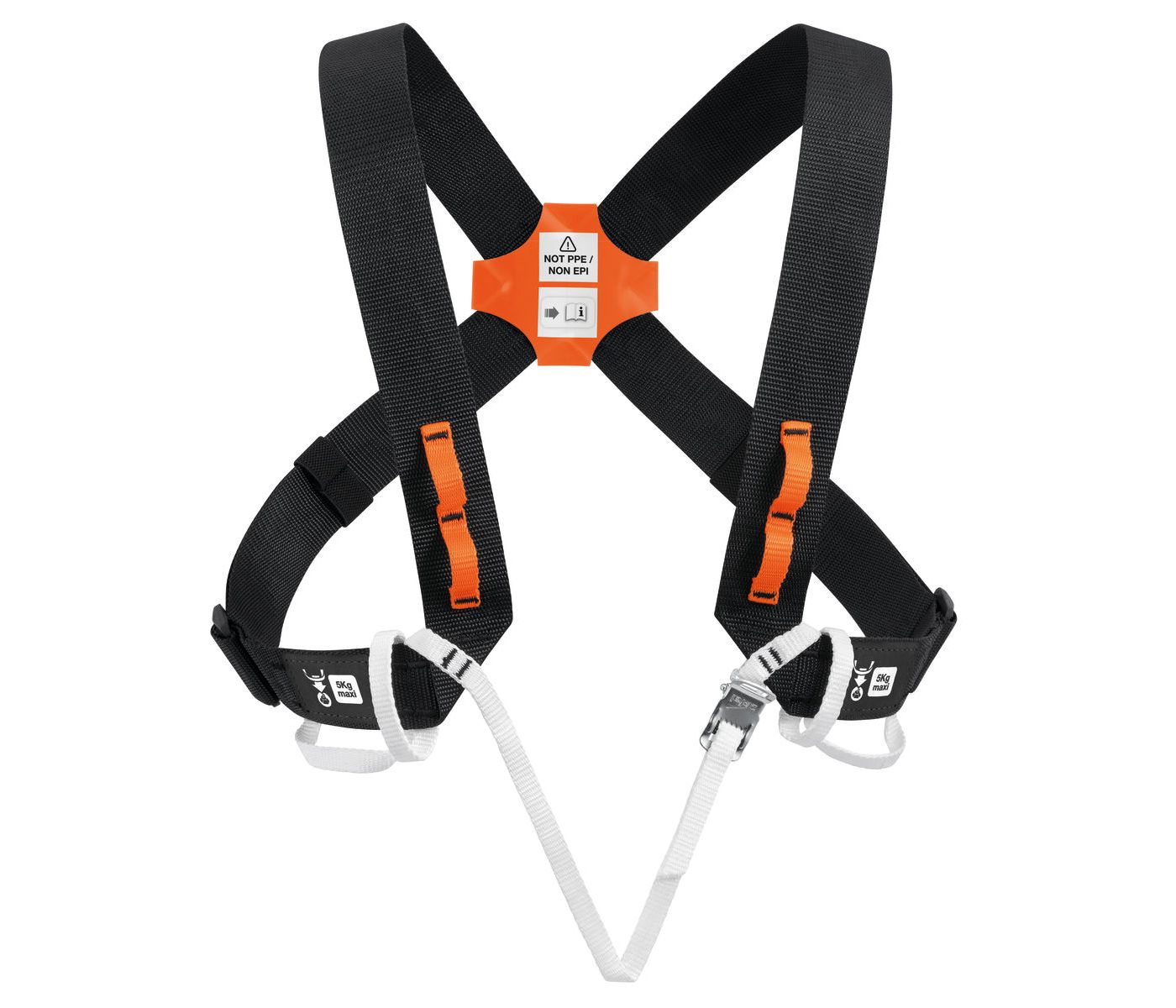 Schulterträger zum Positionieren einer CROLL-Seilklemme vor der Brust mit Materialschlaufen