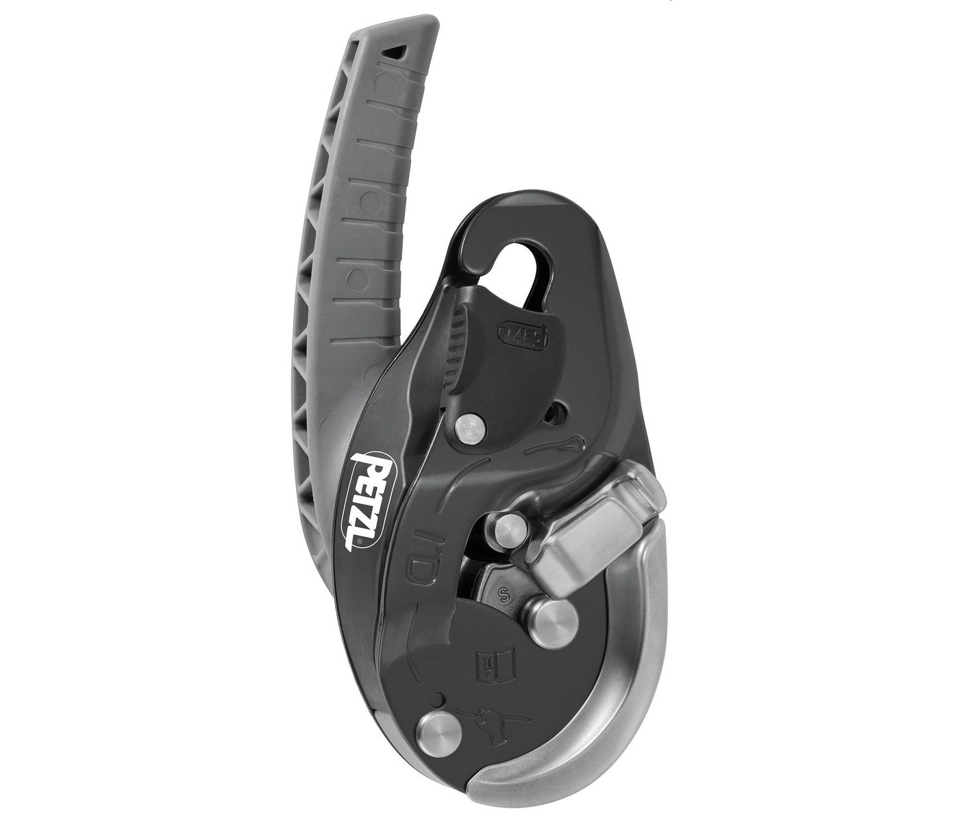 – automatischer Übergang des Griffs in die Ruhestellung, wenn das Seil aus dem Gerät entfernt wird, wodurch die Gefahr des ungewollten Hängenbleibens beim Tragen des Abseilgeräts am Gurt verringert wird.