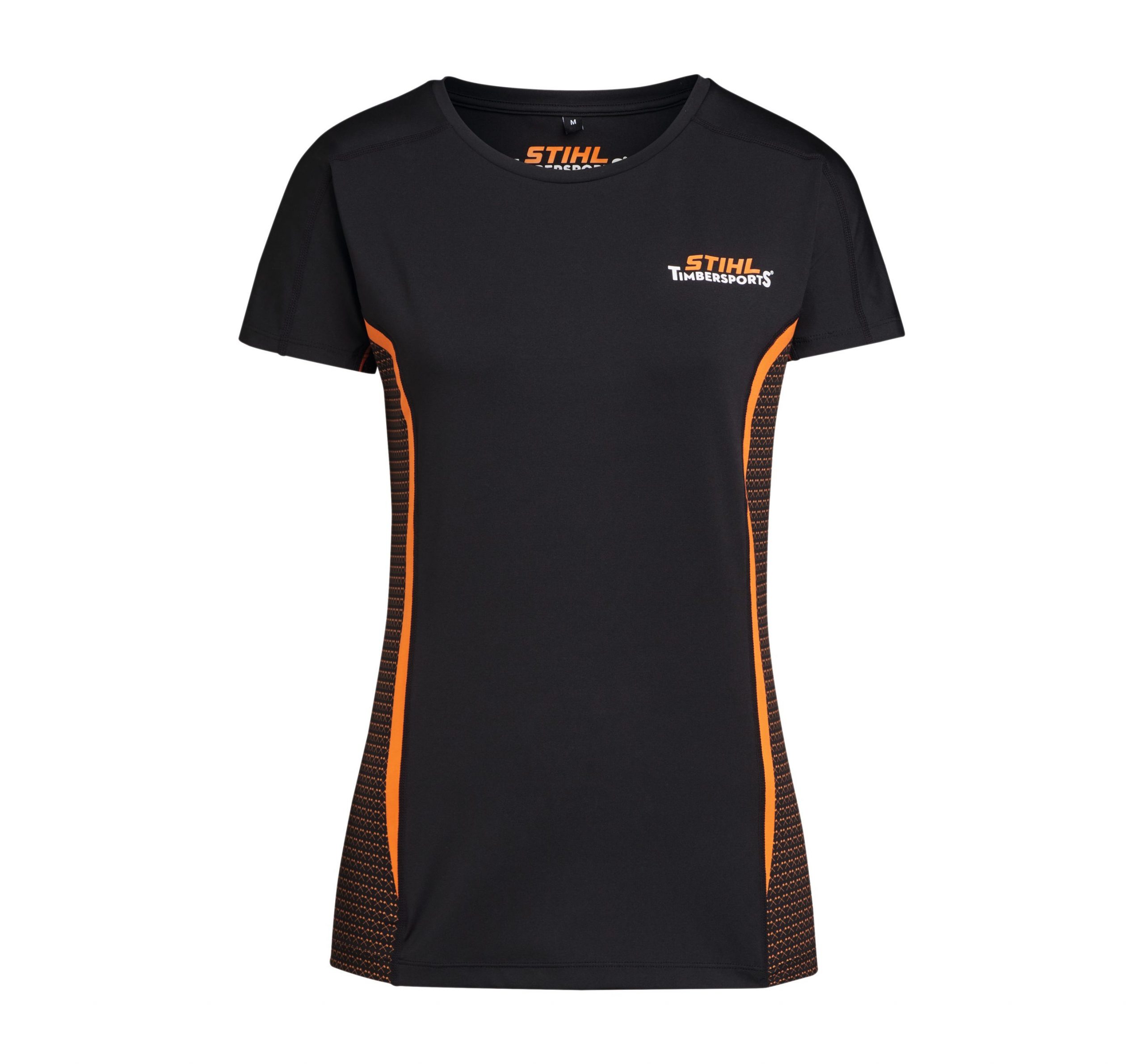 Ideal fürs Training: das atmungsaktive Funktionsshirt mit STIHL TIMBERSPORTS®-Logo-Print auf der Brust und einem Rapport aus kleinen gekreuzten Äxten auf den Bundeinsätzen.