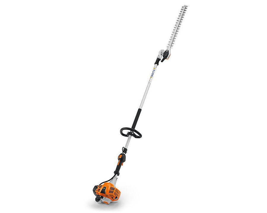 Für professionelle Arbeiten an hohen Hecken und den Einsatz in Bodennähe. Gewichtsreduziertes Getriebe, 2-MIX-Motor mit ECOSPEED zur Drehzahlregulierung für lange Arbeitsintervalle in lärmsensiblen Bereichen, STIHL ErgoStart, um 145° schwenkbarer Messerbalken, Gesamtlänge 242 cm.