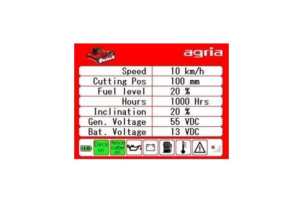 The sweep-controlled high grass sickle mower 9600 from Agria offers an excellent mowing result identically when driving forwards and backwards. As a result, a turning manoeuvre becomes unnecessary. The two powerful 48 Volt electric traction drives (brushless) allow extremely sensitive and direct control of the machine.
