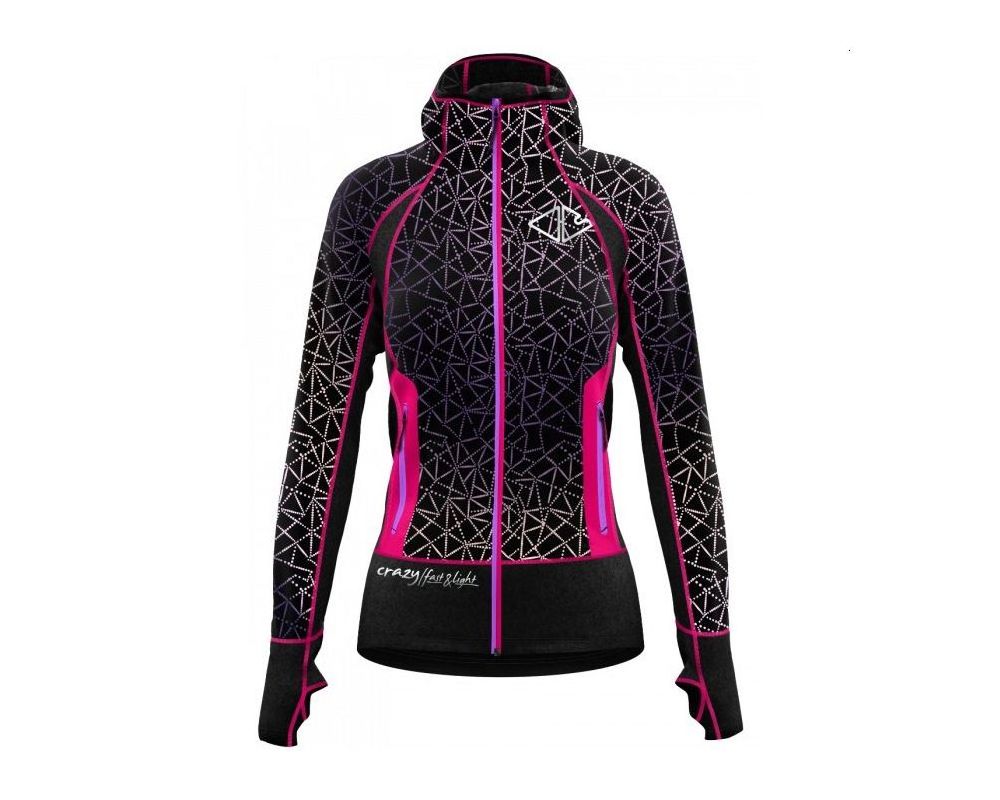 Second protective layer for mountaineering use at altitude. The innovative concept of combining fabrics with kaleidoscopic effect has made it a successful garment. FabricStretch Series combined with microfiber with kaleidoscopic reflective outer print. Integrated hood with elastic hem, sleeve bottom with thumb loop, inner lining with inner graphene yarn and outer reflective print.