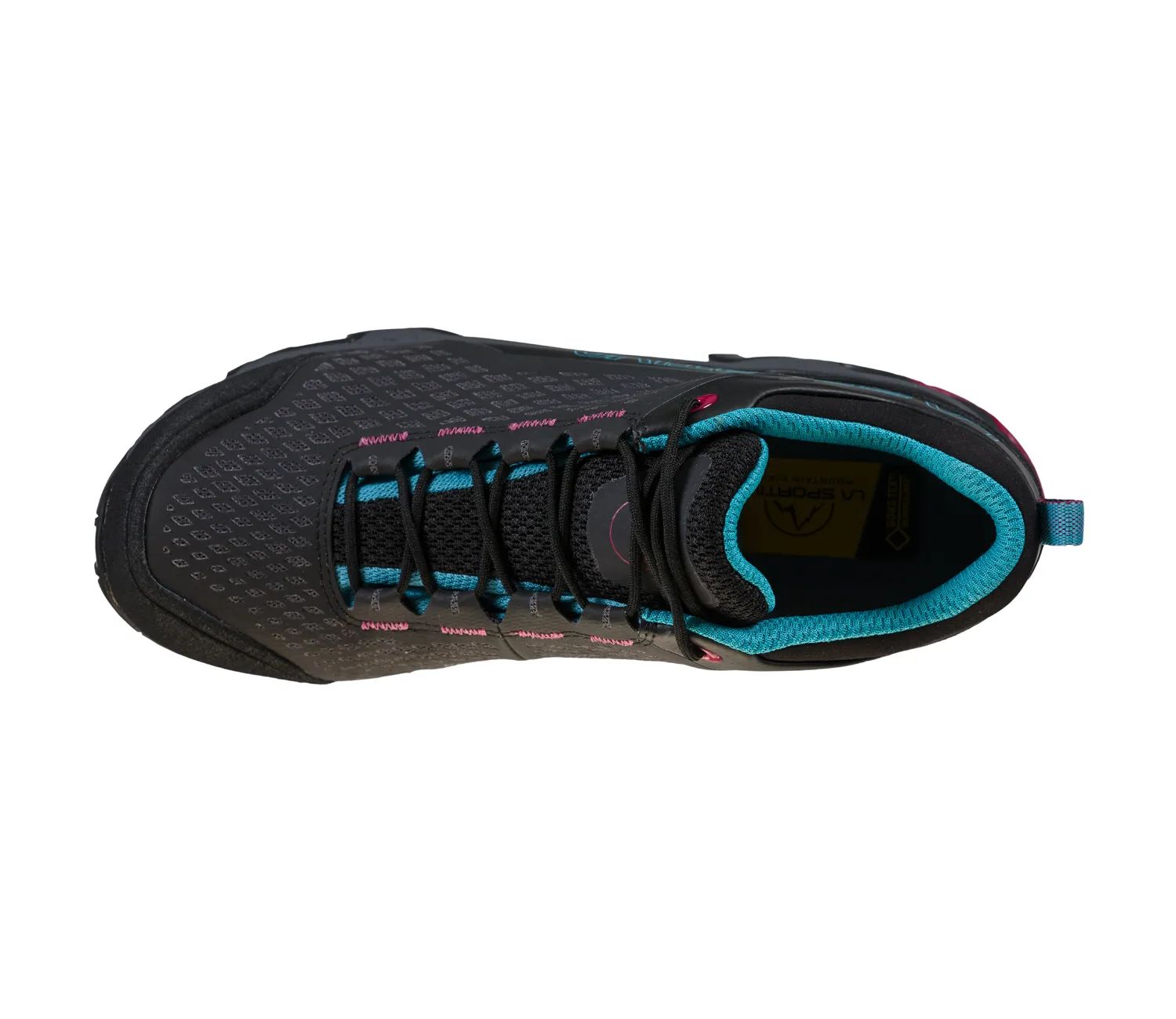 Spire is a new generation shoe for, fast hiking. It adopts solutions that are part of La Sportiva’s mountain DNA combining technologies and concept derived from the Mountain Running and Mountain categories to create a versatile, waterproof and 360° breathable shoe thanks to the new GORE-TEX SURROUND® technology: the exclusive membrane that guarantees 360° breathability thanks to the wider aeration surface that comprises the uppers, footbed and EVA midsole with side ventilation outlets in TPU. The aeration channels visible along the profile of the midsole, are protected by an extremely resistant Nylon mono net, to prevent stones and other impurities from entering the ventilation outlets. The mid cut uppers use the Nano-Cells 2.0™ structure , super breathable cells that work in synergy with the GORE-TEX SURROUND® membrane to provide unprecedented levels of breathability. The lower part of the boot incorporates the Stability control System™, a stabilizing control system that integrates the ventilation outlets with the GORE-TEX SURROUND® technology. The Vibram XS Trek outsole provides excellent grip on hard, soft and muddy terrain. All round breathability and comfort is guaranteed.