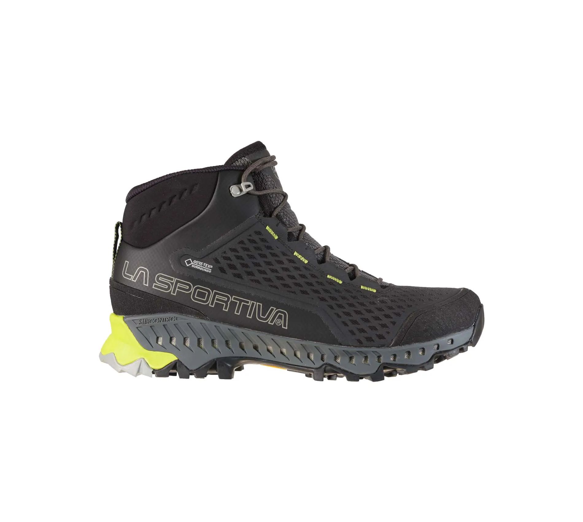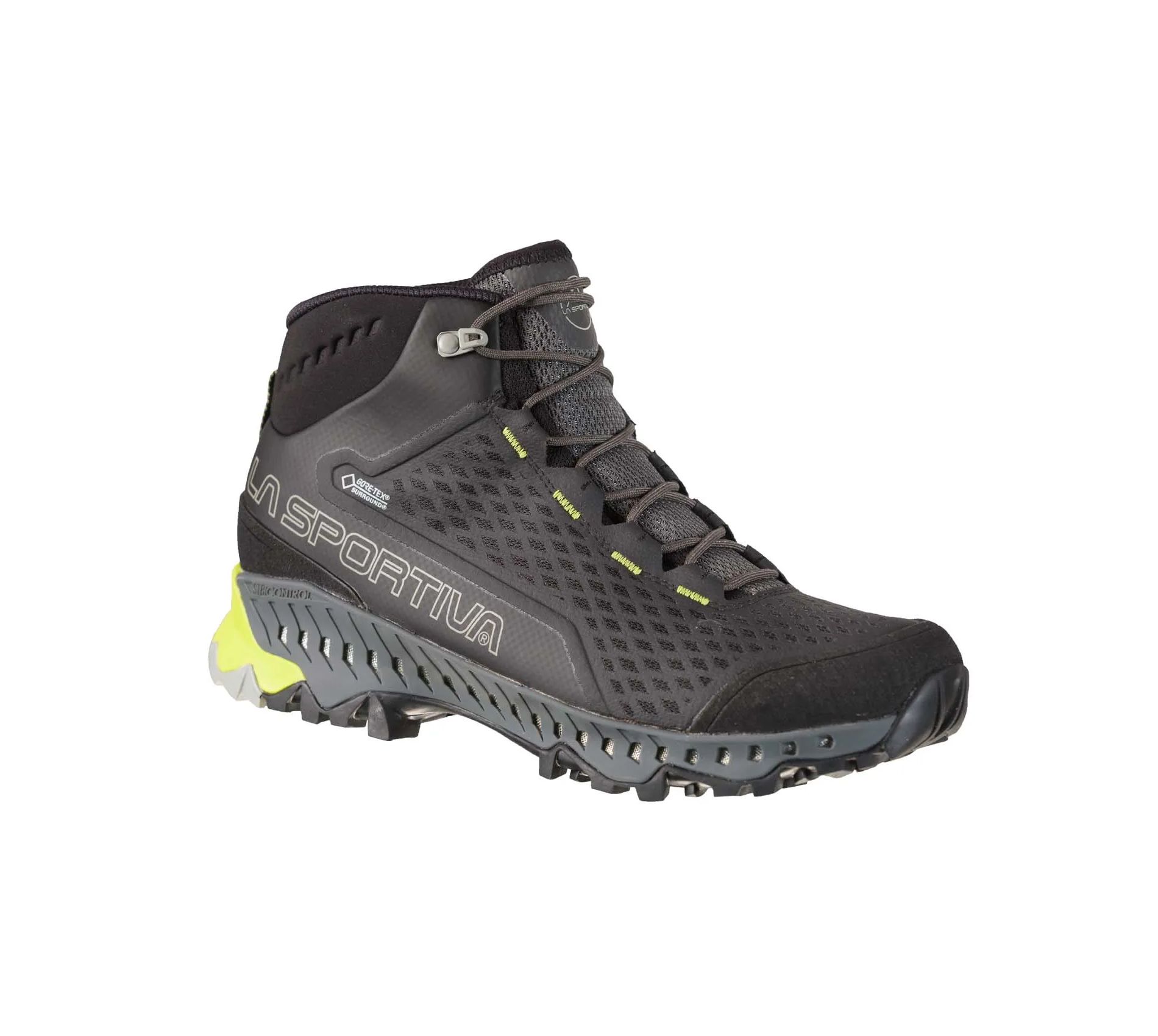 Stream is the next generation mid-cut fast hiking boot. It adopts solutions that are part of La Sportiva’s mountain DNA, combining them with Mountain Running-derived technologies and concepts for a versatile, waterproof and super-breathable product thanks to the new GORE-TEX® SURROUND® technology: an exclusive solution that allows total breathability thanks to the increased aeration surface area that includes the upper, insole and the laterally perforated EVA and TPU midsole. The aeration channels visible along the midsole profile are protected by a very durable mono-bava Nylon mesh to prevent the entry of pebbles and impurities. The mid-cut upper is made with Nano-Cells 2.0™ construction composed of super-breathable cells that work in synergy with the GORE-TEX® SURROUND® membrane for unprecedented increased breathability. The bottom of the shoe sees the integration of the Stability control System™, an anti-torsional stabilization system that integrates the ventilation holes of GORE-TEX® SURROUND® technology. The tread is Vibram XS Trek compound for excellent grip on hard, soft and muddy terrain. Breathability and all-around comfort.