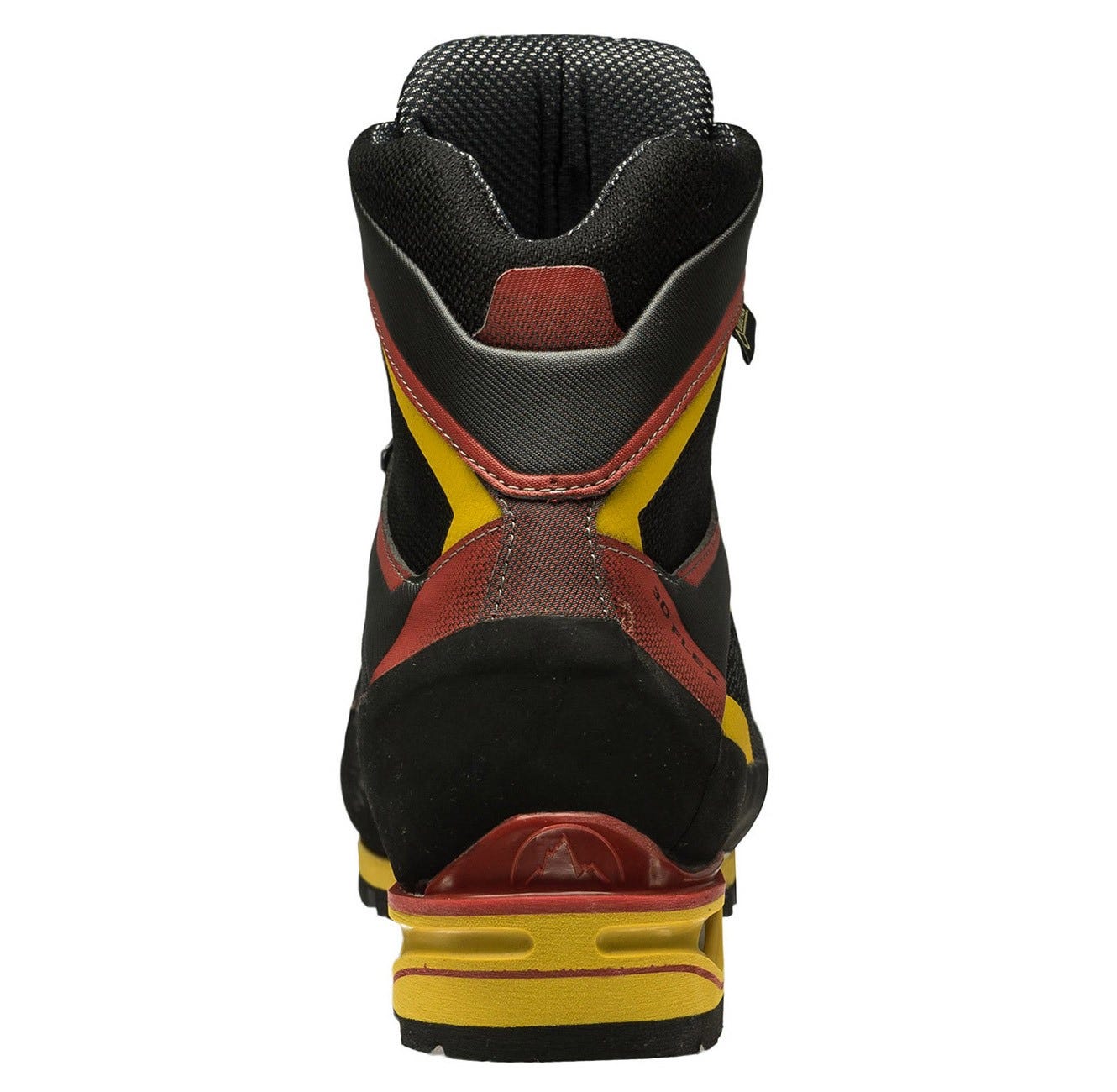 The upper is made of the exclusive high-tenacity fabric with mono-bavon reinforcements with Honey-Comb Guard™ differentiated anti-abrasion zone technology positioned at the most abrasion-prone points. Trango’s characteristic aesthetic line with minimized seams is functional in containing weight, to which the tread made by Vibram with exclusive La Sportiva Cube design with lightened thicknesses also contributes. The Gore-Tex Performance Comfort membrane provides waterproofing and breathability, and the 3D-Flex System ankle joint allows better control in support. Differentiated lacing between upper and lower allows perfect volume adjustment for optimal fit comfort. The Trango series is enriched with technical-aesthetic content that is always ahead of its time.