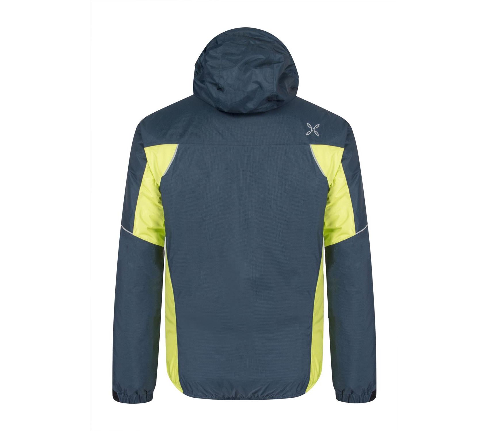 • Hood with peak and tight elasticated band on the front. Adjustable on back
