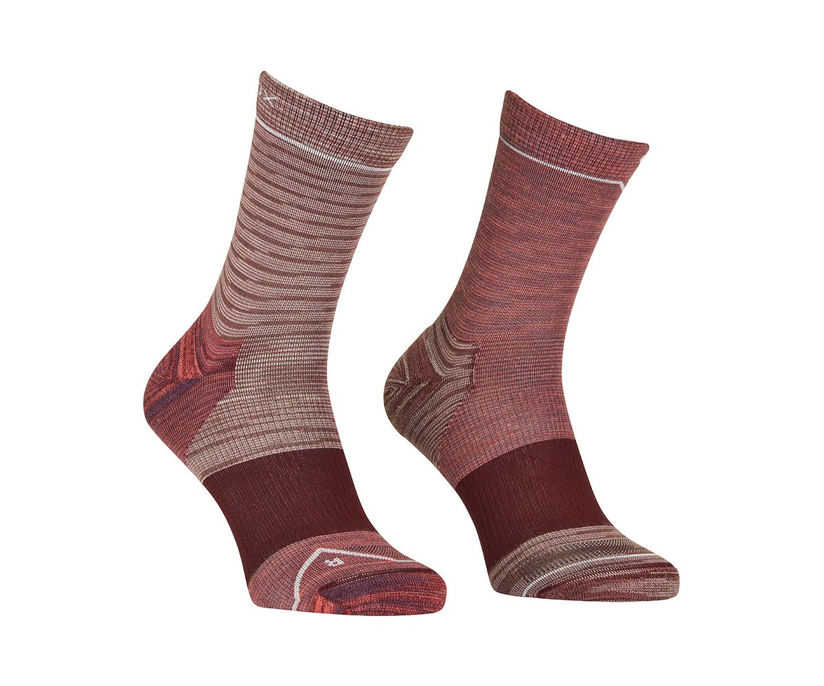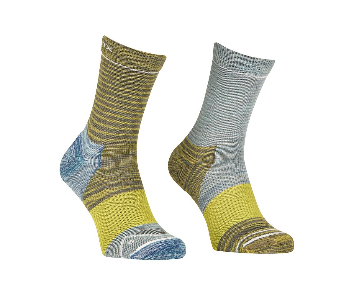 Summer, sun, light: long summer tours can’t miss the women’s/men’s ALPINE MID SOCKS. The sturdy material mix with Merino wool with thermoregulating and anti-odor action features a circular mesh system that ensures optimal ventilation. To ensure that the foot is not only well-ventilated but also optimally protected, reinforcements at the most sensitive points provide additional cushioning and protect against abrasions. Thanks to the comfortable elastic hem, ergonomic fit optimized for left and right, and special ankle stabilization zone, slipping socks will be a distant memory. The lightweight, soft material prevents creasing and, together with the flat seams, prevents annoying blisters and pressure points. This makes the ALPINE MID SOCKS ideal for longer hikes on hot summer days.