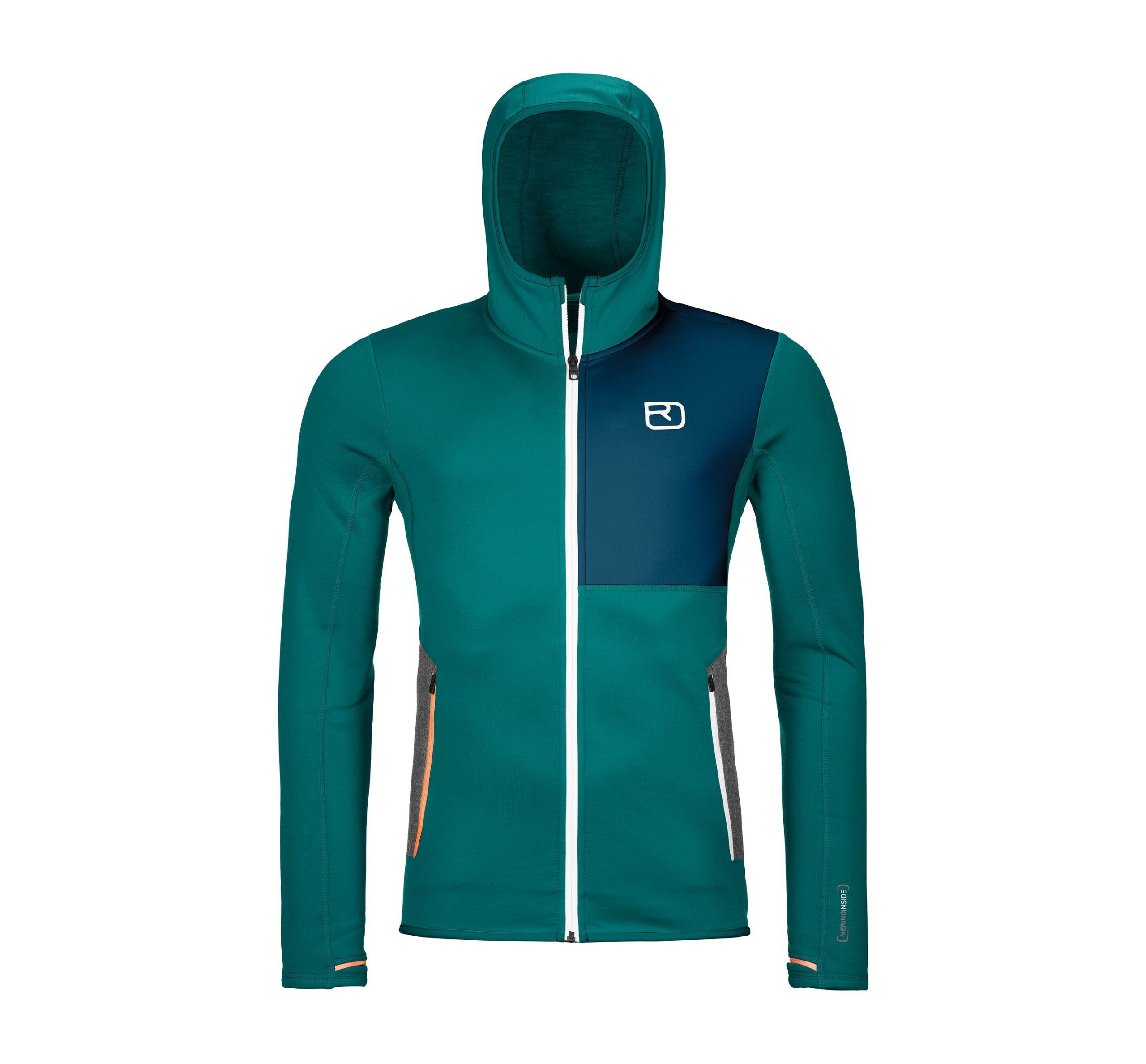 The men’s FLEECE HOODY is a must-have garment that provides all the functionality, freedom of movement and natural thermal comfort essential in the mountains on cold winter days.