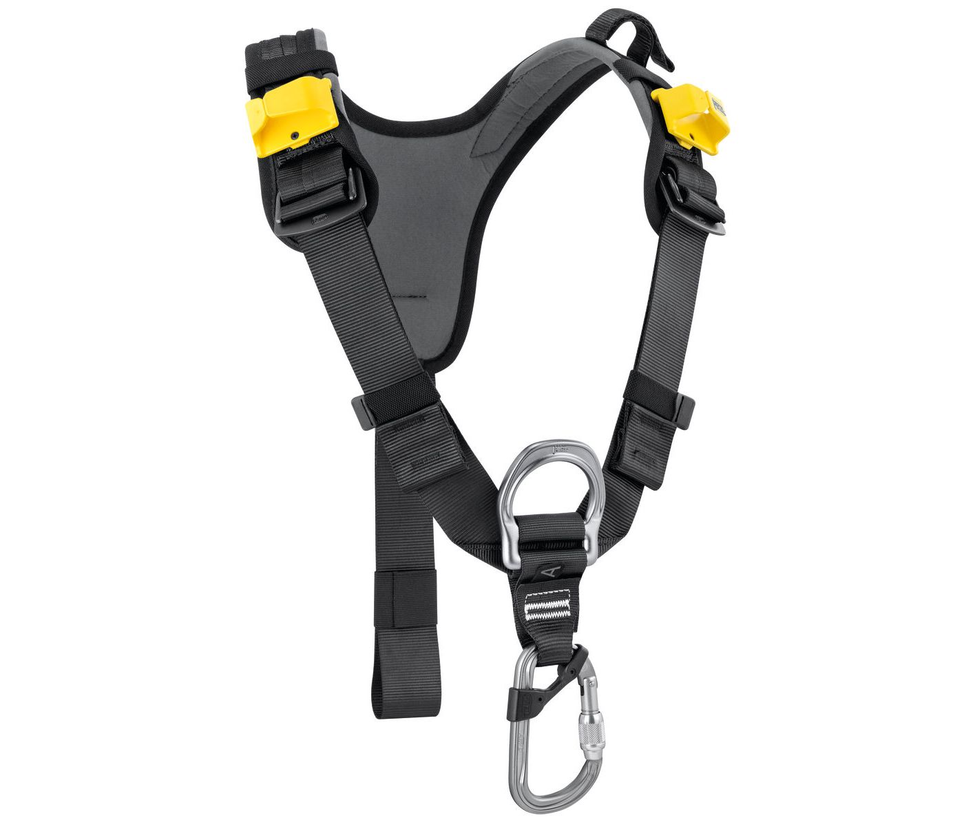 The TOP chest harness allows AVAO SIT, AVAO SIT FAST, FALCON, FALCON MOUNTAIN and SEQUOIA SRT low harnesses to be converted into fall arrest harnesses. Padded shoulder straps are separated from the neck to limit chafing. In the event of a load on the belt, they take this load and spread it over the shoulders. They also have a system for organizing fall arrest lanyard connectors and keeping them handy.