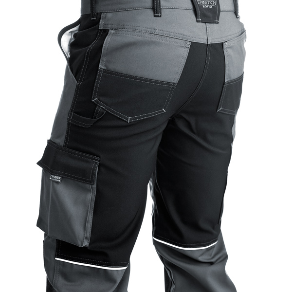 The StretchZone® Canvas is the perfect armor for your daily work. The Kevlar-reinforced knee section is extremely strong. For longer knee activities, an additional knee pad can be inserted here. The elastic gusset in the crotch area and multiple interlocks in the seat seam prevent the seams from tearing and stretching too far. StretchZone® technology ensures optimal support and the best ventilation for all activities. Deliberate arrangement of pockets for daily use, including a special 3-compartment tape measure pocket, provides space for all tools.