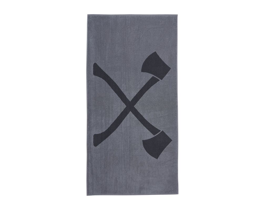 Grey and dark grey, 100 % cotton, 70 cm x 140 cm, terry towel with coloured woven axes, loop “STIHL TIMBERSPORTS®”.