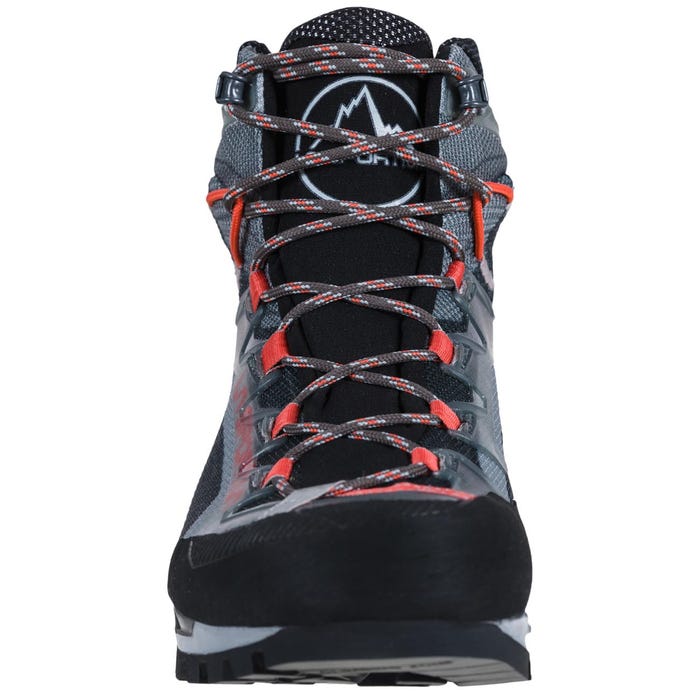 La Trango Tech Gore-Tex est une chaussure d’alpinisme légère et particulièrement souple, idéale pour les randonnées en haute altitude, les approches techniques et pour le travail des guides de montagne et des sauveteurs en montagne. L’empeigne est fabriquée en tissu résistant à l’abrasion avec la technologie Thermo Tech Injection, un matériau thermoplastique spécial injecté qui donne à la chaussure sa structure, minimise les coutures et réduit le poids. Le laçage, qui descend jusqu’aux orteils, offre un ajustement maximal du volume et les boucles contribuent à la rigidité de la tige. La languette de la chaussure intégrée à la tige en tissu extensible souple, avec une forme ergonomique, un volume externe compact et une coupe ajustée, rend la chaussure particulièrement confortable et adaptée aux longues périodes d’utilisation. La semelle intermédiaire antichoc en polyuréthane basse densité réduit l’impact avec le sol pendant la marche et assure la durabilité. Le système de mouvement 3D Flex favorise la mobilité de la cheville et aide à marcher avec précision sur les terrains irréguliers, tandis que la semelle Vibram La Sportiva Cube, avec ses différentes épaisseurs de noyau, permet de marcher sur toutes les surfaces. Trango Tech Gore-Tex : la meilleure technologie au service des randonneurs. La semelle Vibram La Sportiva Cube, avec ses différentes épaisseurs de picots, favorise le piétinement sur n’importe quelle surface. Trango Tech Gore-Tex : la meilleure technologie au service des randonneurs. La semelle Vibram La Sportiva Cube, avec ses différentes épaisseurs de picots, favorise le piétinement sur n’importe quelle surface. Trango Tech Gore-Tex : la meilleure technologie au service des randonneurs.