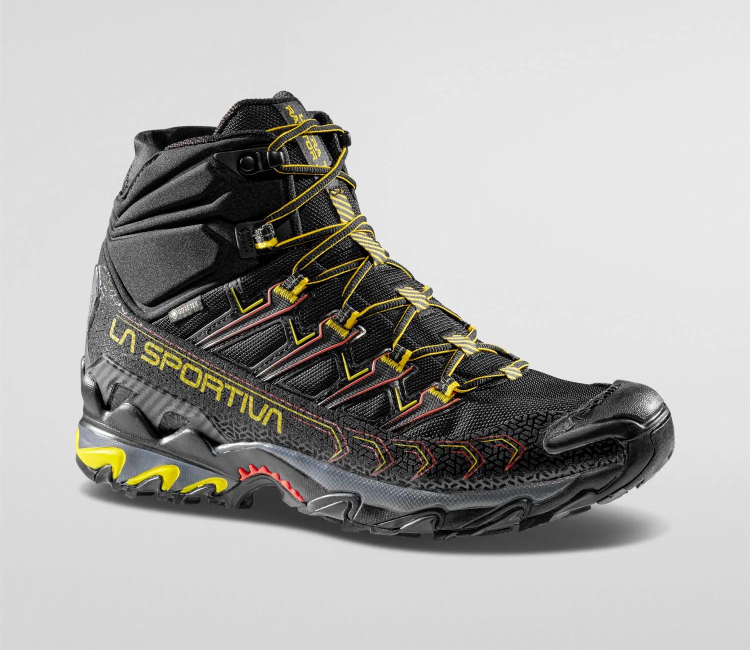 La Ultra Raptor Mid II GTX est la version mid-cut du modèle de trail running Ultra Raptor II. Elle est idéale pour les randonnées rapides et les excursions légères. Elle est imperméable et respirante grâce à la membrane GORE-TEX Extended Comfort. Le collier souple Comfort Collar protège la cheville des pierres et de la boue et intègre le spoiler easy-fit pour faciliter l’ajustement. La tige est en tissu mesh résistant à l’abrasion et respirant, parfait pour une utilisation dans toutes les conditions. Le talon stabilisateur arrière permet un contrôle parfait dans les traversées. Le système de laçage est intégré à la tige par des boucles cousues sur le tissu élastique interne et des renforts haute fréquence sur le mesh externe : ce système permet de répartir la tension du laçage sur l’ensemble de la tige et d’envelopper le pied de la meilleure façon possible pour un confort parfait. L’Ultra Raptor Mid II GTX est également disponible dans une version confort wide-fit dédiée aux coureurs aux pieds larges. Le résultat est une chaussure de randonnée qui peut être portée pendant plusieurs heures d’affilée et qui convient à une utilisation tout-terrain sur tout type de terrain. Raptorize yourself, again.