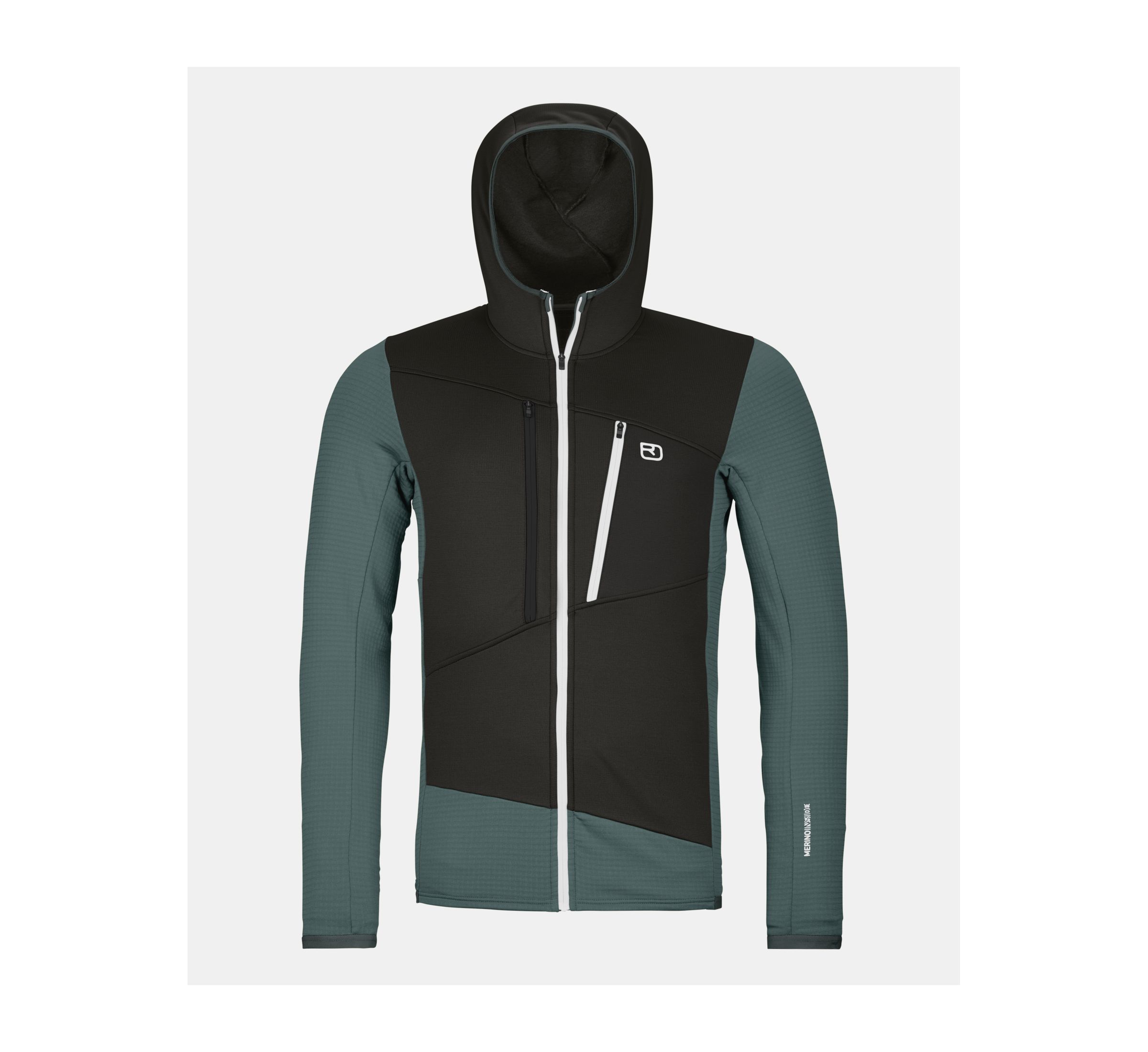 Le matériau MERINO FLEECE GRID retient l’air chaud à l’intérieur grâce à sa structure finement gaufrée et évacue l’humidité vers l’extérieur, de sorte que le sweat à capuche est à la fois agréablement chaud, rapidement sec et extrêmement respirant. La laine mérinos agréablement douce sur la peau assure une régulation optimale de la température et a en même temps un effet anti-odeurs. Aux endroits exposés comme la poitrine, les épaules et la tête, des inserts en MERINO FLEECE LIGHT élastique et respirant protègent du vent et du froid.