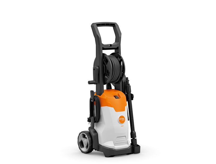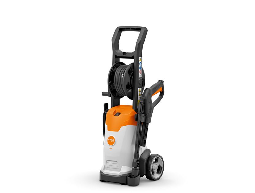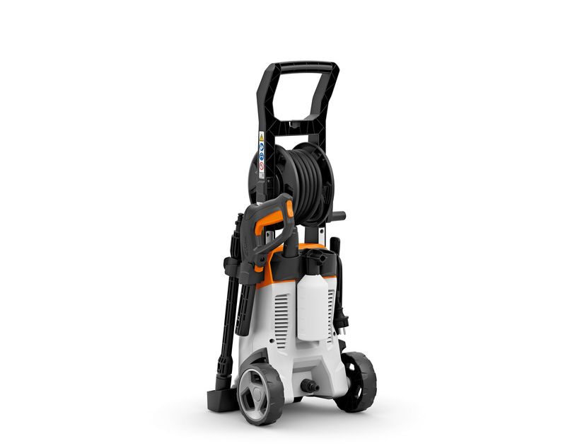 Nettoyeur haute pression léger et compact avec pompe pompe à haute pression en aluminium, buse rotative, buse à jet plat ensemble de buse et de spray détergent. Position de stationnement pour le stockage des lances pendant les pauses de travail et la sécurité et stockage sûr et peu encombrant et pour ranger les accessoires directement sur l’outil. accessoires directement sur l’outil. Raccord rapide pour une connexion facile au nettoyeur haute pression et au pistolet. le nettoyeur haute pression et le pistolet. Enrouleur de tuyau avec guide pour pour un stockage et une manipulation aisés tuyau haute pression de 6 m de tuyau haute pression.