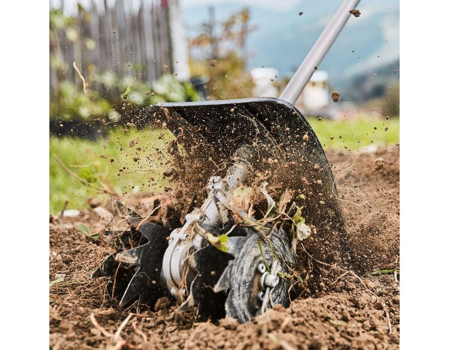 Pour aérer et cultiver le sol. Largeur utile 22 cm, protection incluse, longueur totale 100 cm, poids 4,1 kg.