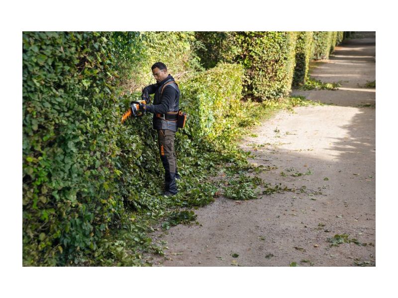 Taille-haie professionnel sans fil extrêmement puissant et robuste avec des lames affûtées à double face pour les coupes d’élagage. Vitesse élevée de la lame pour une coupe particulièrement précise et nette. Moteur EC pour des performances constantes et une longue durée de vie. Poignée multifonctionnelle pivotante avec réglage de la vitesse à trois niveaux, poignée ergonomique en forme d’arc avec interrupteur interne, lames à friction optimisée avec protection contre les coupures et protection de guide vissée. Préparez le STIHL Smart Connector 2 A dans le boîtier de l’outil. Fonctionnement sur batterie via l’étui de ceinture AP avec câble de connexion et système de support ou batterie de secours AR L.