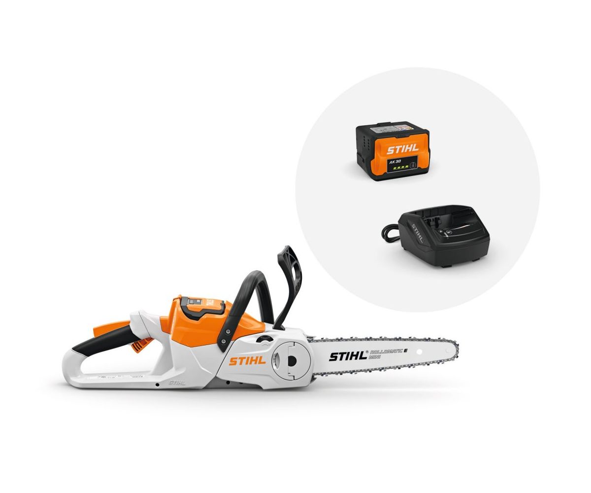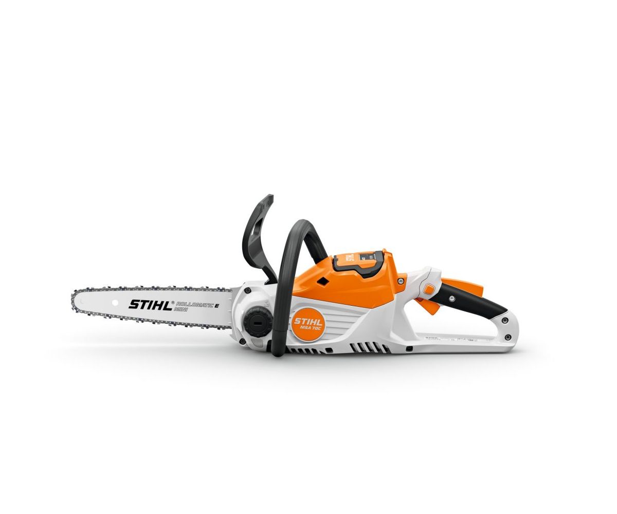 Tronçonneuse sans fil légère et facile à utiliser, avec des performances de coupe supérieures de 25 % à celles de la MSA 60 C-B. Idéale pour l’entretien occasionnel du terrain, la coupe de bûches couchées et les travaux d’artisanat simples. Chaîne PM3 ¼ » pour des performances de coupe élevées et une coupe nette, levier de commande ergonomique avec fonction potentiomètre pour un réglage en continu de la vitesse, tendeur de chaîne rapide STIHL pour tendre la chaîne de la tronçonneuse sans outil, réservoir d’huile transparent pour un contrôle visuel facile du niveau de remplissage.