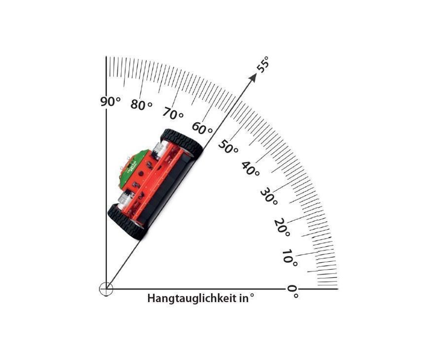 La falciatrice telecomandata per erba alta 9600 di Agria con l’innovativo concetto di trazione ibrida: trazione elettrica e potente motore a combustione. La macchina professionale con una larghezza di taglio di 112 cm per un uso economico su aree problematiche a manutenzione estesa. Falciatura su quasi tutte le pendenze fino a un’inclinazione di circa 55° (143%).