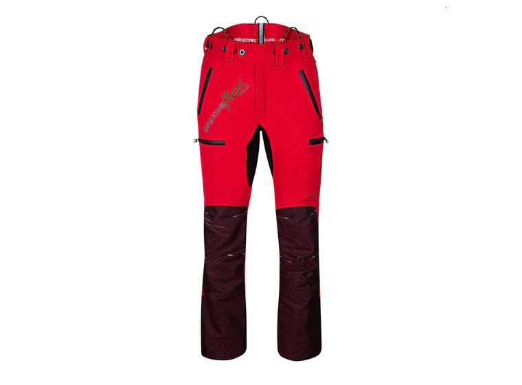 Questo modello è stato progettato pensando ai forestali. Ha uno schienale alto con punti di attacco per bretelle e una tasca per il metro. Tutte le tasche esterne sono dotate di cerniera per tenere fuori i detriti e di prese d’aria per una maggiore traspirabilità (solo modello A).