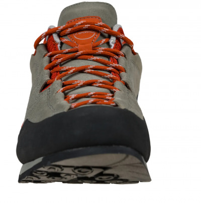Tomaia in pelle scamosciata con bordo di protezione all-around per massima protezione dagli sfregamenti in fase di arrampicata. Sistema di allacciatura brevettato derivato dal progetto della scarpetta d’arrampicata Mythos. Calzata ed allacciatura asimmetriche. Suola Vibram di nuova concezione con design concepito per migliorare il grip in fase di arrampicata e sistema Impact Brake System per conferire maggior tenuta in discesa. Inserto plantare in EVA morbida 2 mm con proprietà anti-shock.