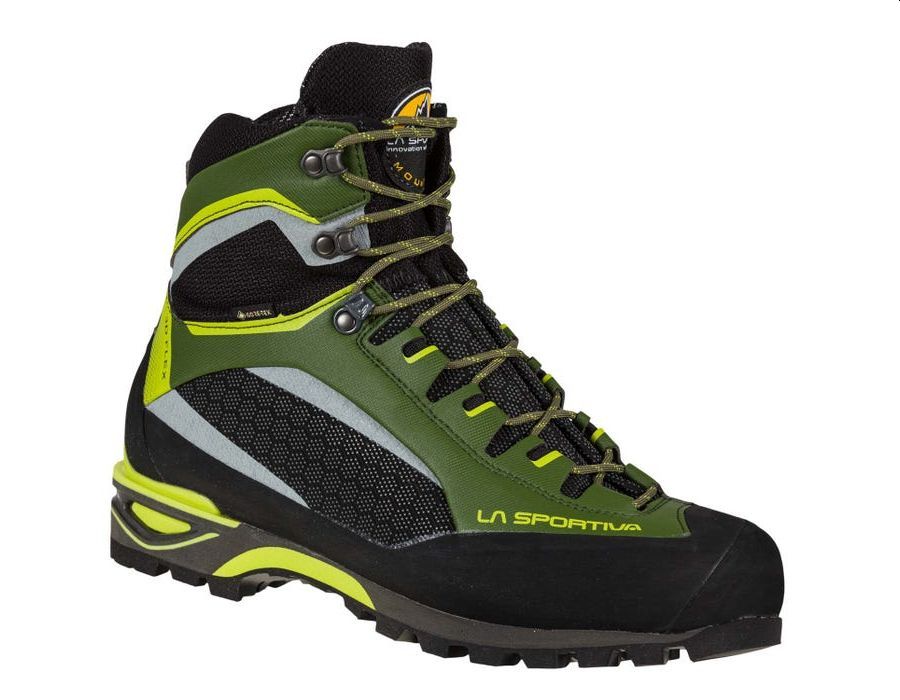 La tomaia è realizzata con l’esclusivo tessuto ad alta tenacità con rinforzi mono-bavacon tecnologia a zone anti-abrasione differenziate Honey-Comb Guard™ posizionate nei punti più soggetti ad abrasione. La caratteristica linea estetica Trango con cuciture ridotte al minimo è funzionale al contenimento del peso, al quale contribuisce anche il battistrada realizzato da Vibram con esclusivo disegno La Sportiva Cube a spessori alleggeriti. La membrana Gore-Tex Performance Comfort garantisce impermeabilità e traspirazione, lo snodo della caviglia 3D-Flex System permette un miglior controllo in appoggio. L’allacciatura differenziata tra parte superiore ed inferiore permette una perfetta regolazione dei volumi per un comfort di calzata ottimale. La serie Trango si arricchisce di contenuti tecnico-estetico sempre in anticipo sui tempi.