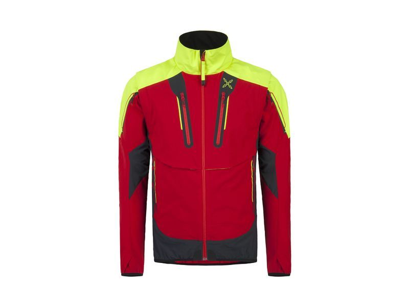 La spalla, il collo e le tasche maniche sono in tessuto 3 strati con trattamento idrorepellente DWR. Tasche mani con zip invisibili e tasche maniche con zip aggiuntiva per antenna radio. Maniche staccabili tramite zip ad alto scorrimento e due ampie tasche interne completano le numerose caratteristiche tecniche di questo capo adatto anche a professionisti della montagna che desiderano elevate performance e funzionalità in ogni contesto outdoor. Applicazioni e stampe rifrangenti per alta visibilità. Regular fit.