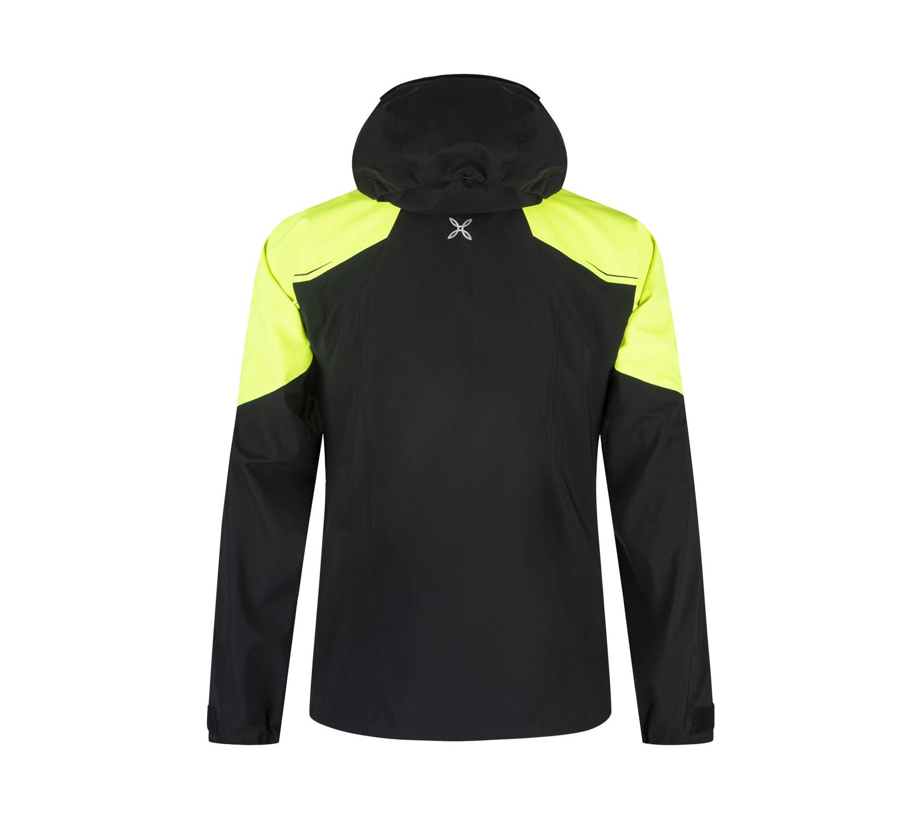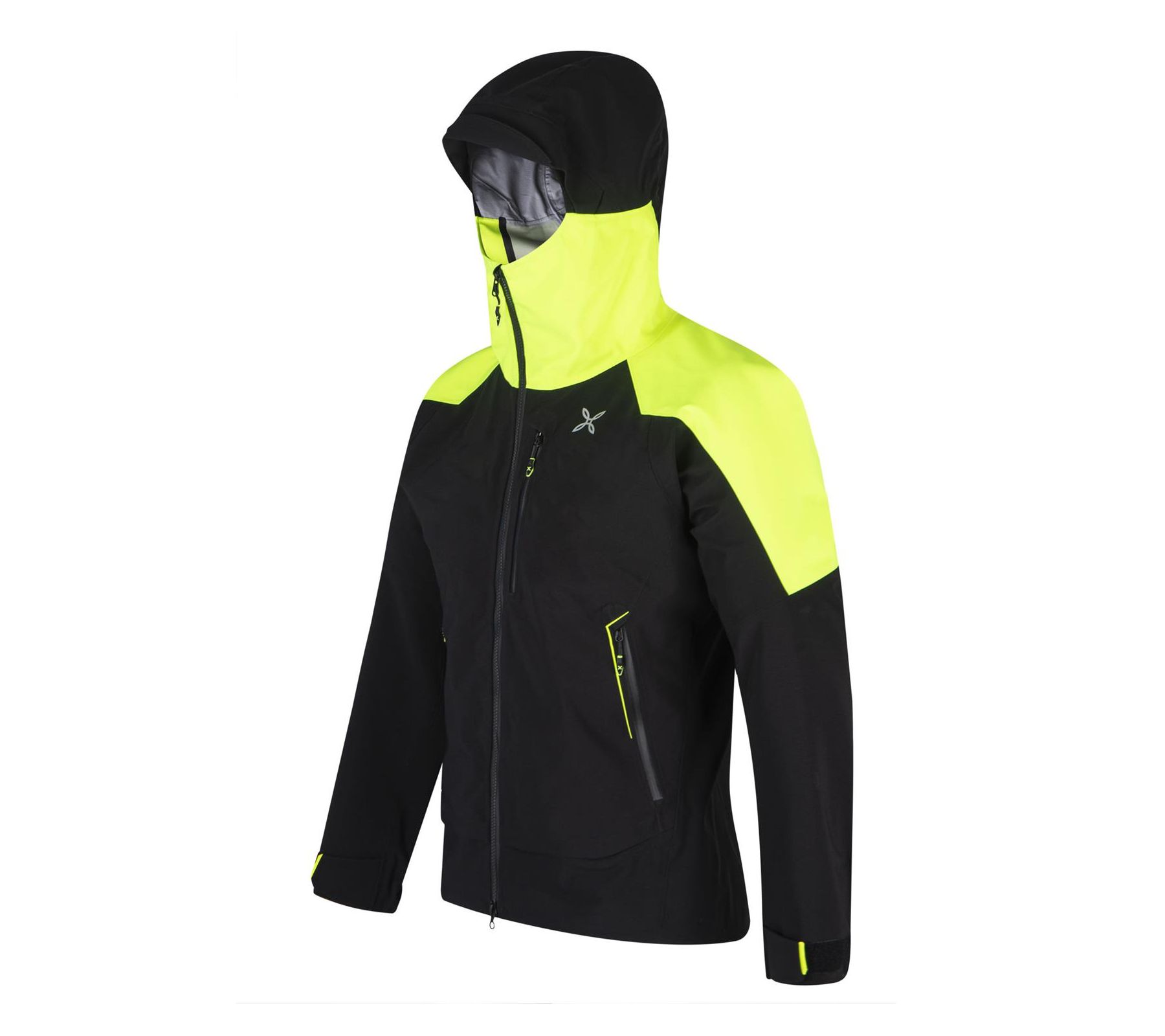 – Tessuto in poliestere elasticizzato a 3 strati con trattamento DWR accoppiato a una maglia di nylon fine con membrana 20K/15K caratterizzata da un’elevata resistenza meccanica