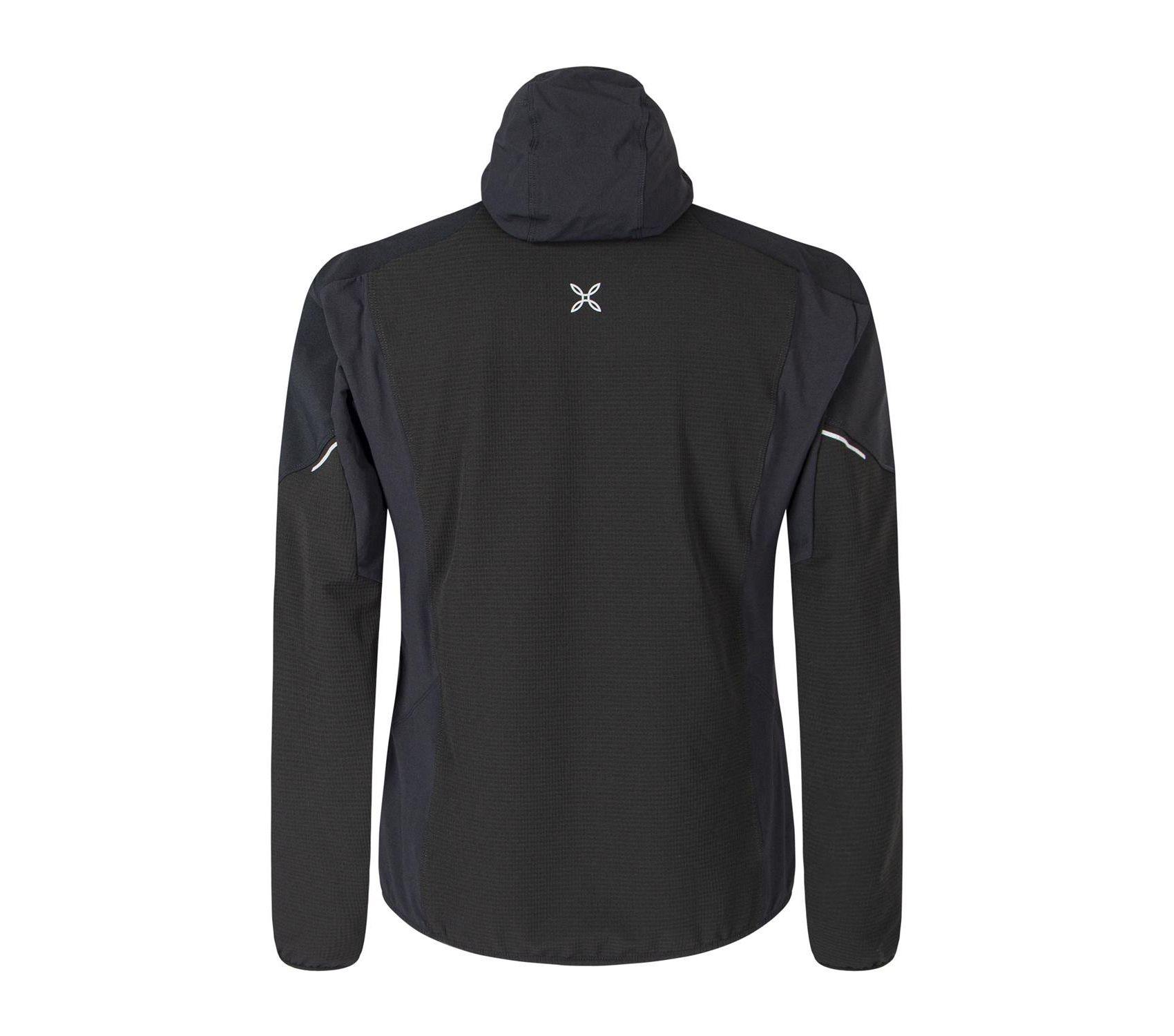 – Tessuto in poliestere elasticizzato con struttura a doppia trama e softshell e trattamento DWR