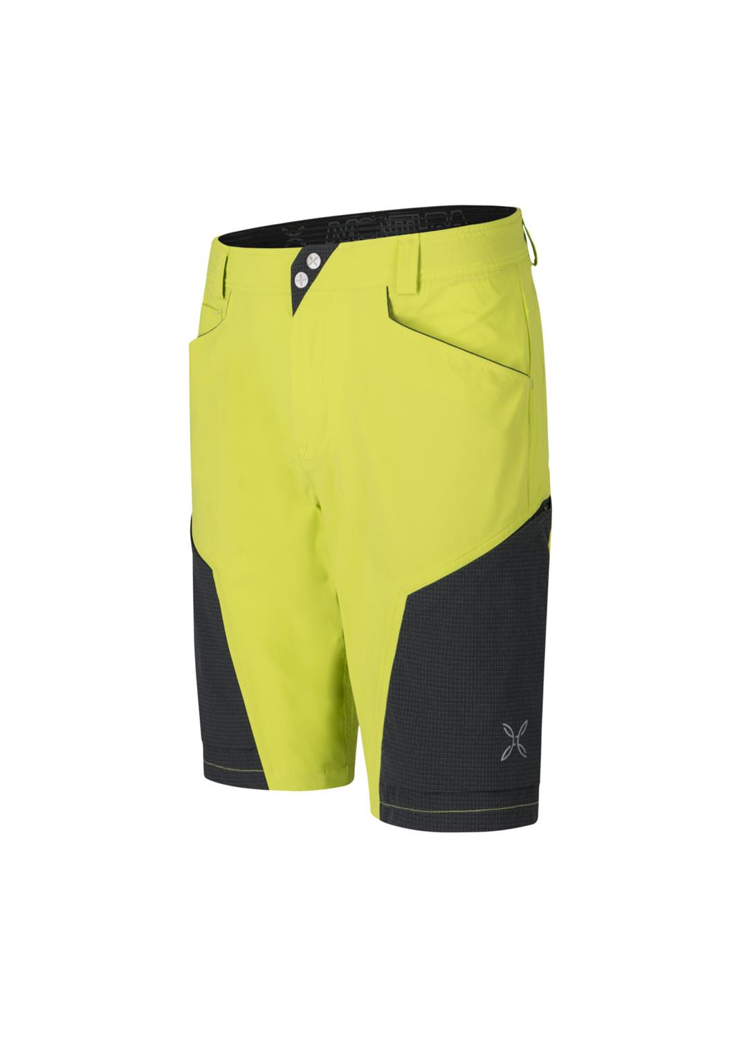 • Tessuto in nylon elasticizzato con trattamento DWR, struttura a doppia trama testurizzata e resistenza allo strappo e all’abrasione