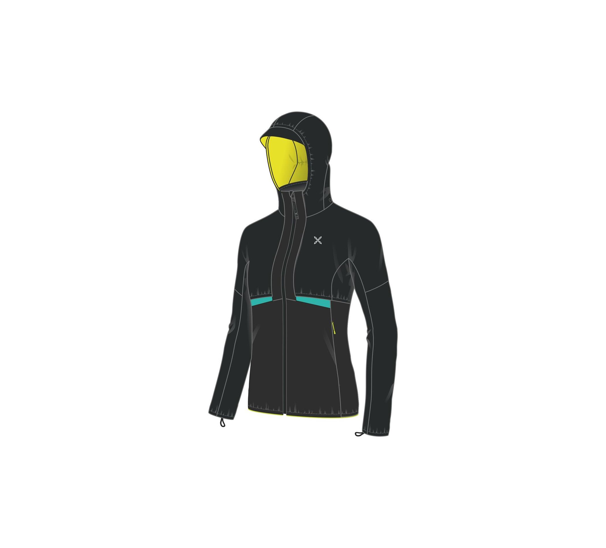 • Tessuto nylon stretch DWR con struttura double weave in rilievo, resistente a strappi ed abrasioni