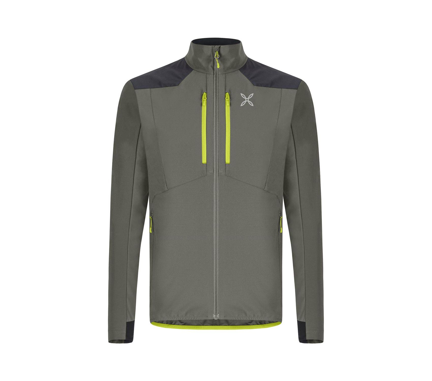 – Spalle e toppe sui gomiti in tessuto di nylon elasticizzato a quattro vie con trattamento DWR e rivestimento in polimeri antiabrasione