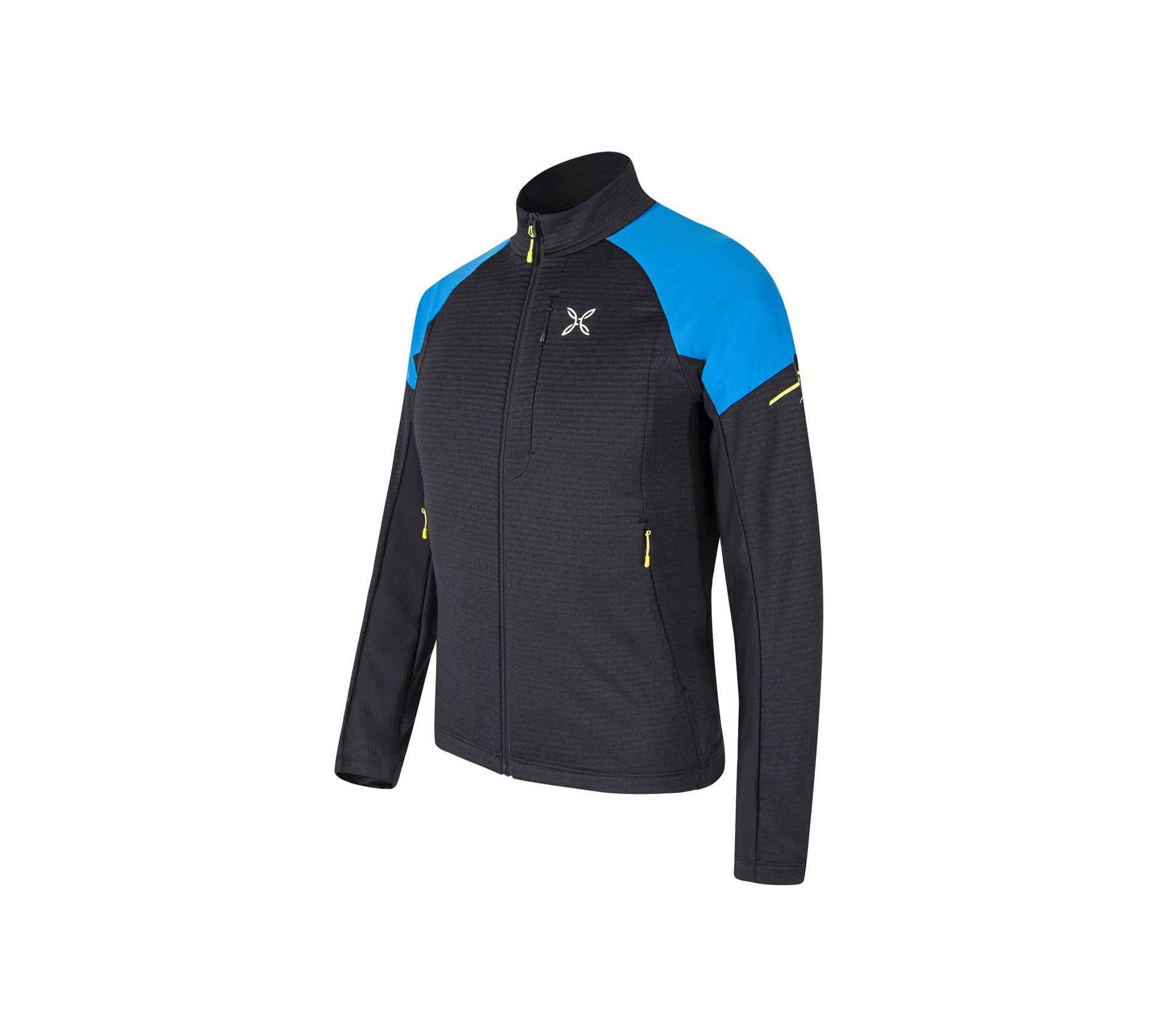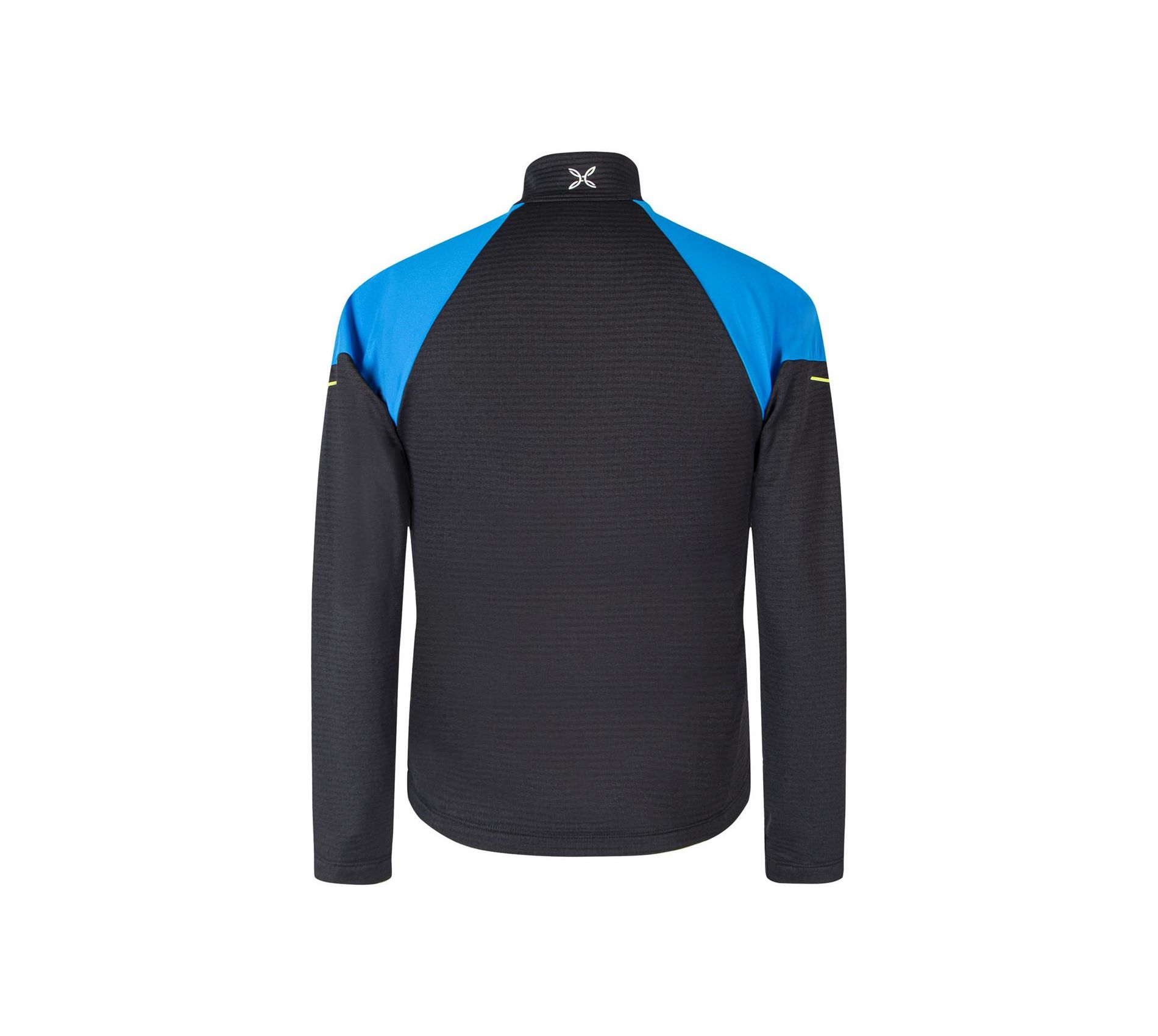 • Tessuto pile poliestere 4-way stretch con garzatura sul rovescio a “grid”, elevata protezione dai raggi UV