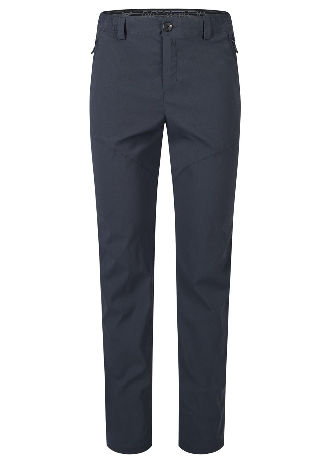 • Vita elasticizzata con passanti per cintura, bottone e zip
