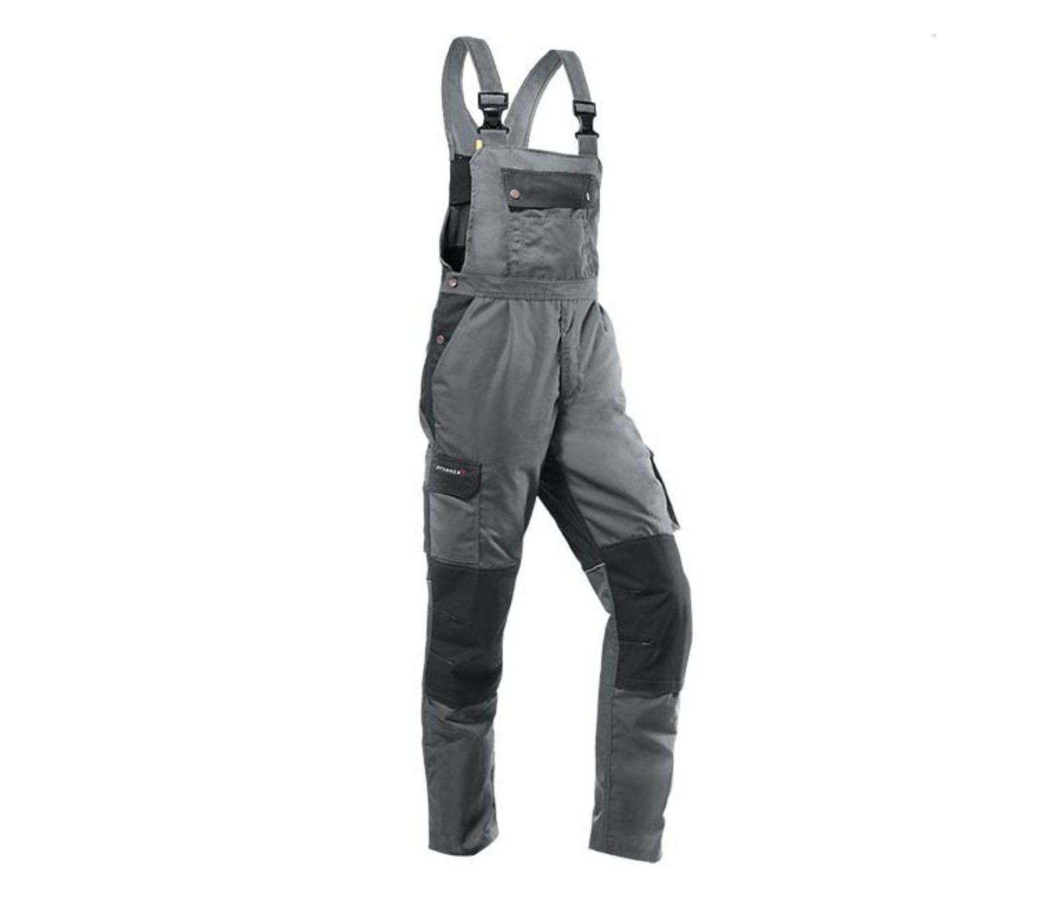 Il taglio della salopette è relativamente classico e le ginocchia preformate ergonomicamente offrono un elevato livello di comfort anche se indossate per lunghi periodi. Le due bretelle sono tagliate larghe, in modo da distribuire uniformemente il peso dei pantaloni sulle spalle. La lunghezza delle cinghie può essere regolata con fibbie in plastica e l’inserto elasticizzato sul retro le rende adatte al lavoro in posizione chinata. Allo stesso tempo, l’ampiezza della vita può essere regolata individualmente tramite bottoni metallici di jeans sui lati. Una pratica cerniera è inserita nella patta.