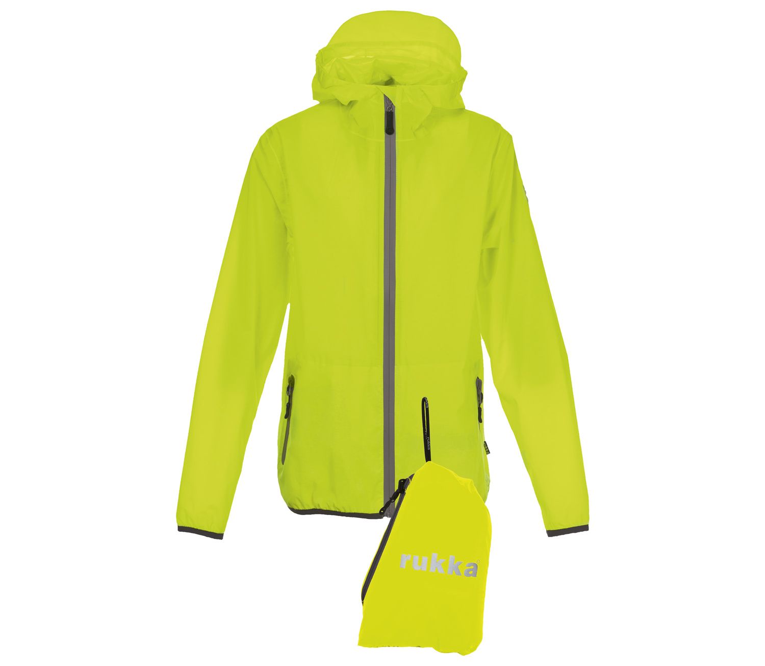 Shelter Kids. Il compagno perfetto quando hai bisogno di una giacca salvaspazio e impacchettabile. Il materiale elasticizzato offre una buona libertà di movimento ed è ideale come protezione dalle intemperie sopra una giacca trapuntata o in pile. I colori fluorescenti (salmone neon e limone fluorescente) offrono la massima visibilità di giorno e sono perfetti per il traffico stradale. Peso totale taglia 128 = 160 g.