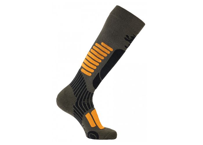Calza invernale in poliammide e lana (50%PA, 23%WO, 20%PC, 7%EA) realizzata con tecnologia a media compressione. La compressione applicata alle calze permette di ridurre la sensazione di affaticamento muscolare, agevolando il naturale flusso del sangue e riducendo l’accumulo di acido lattico. La conformazione aderente permette di ridurre volumi e spessori in eccesso, che possono generare spiacevoli fastidi all’interno della calzatura, mentre la struttura in spugna, più voluminosa e termica, garantisce maggiore coibenza e confort dove richiesto: sommità delle dita, arco plantare, tallone e tibia.