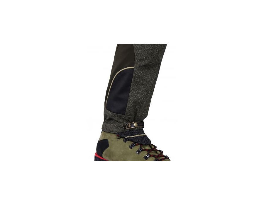 SUMMIT incorpora il nostro più recente ed innovativo sistema di fissaggio allo scarpone SUPER TOPFIX, che evita al pantalone di alzarsi fungendo da ghetta ed impedendo a rami e/o neve di entrare nel collo dello scarpone. Rinforzi in ecopelle al fondo per protegge dallo sfregamento evitando il fruscio, due tasche frontali, due laterali e una posteriore completano la dotazione.